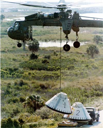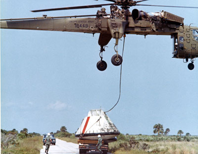 Skycranes often get involved in unusual jobs, and picking up Apollo boilerplates from a swamp hardly ranks as all that special for one of these workhorses, but compared to carrying Army tractors or water tanks, it was probably one of this aircraft’s more glamorous missions.