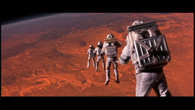 The scenes aboard the Mars 2 spacecraft show off the one area where the film does a decent job. Mars 2 looks like a real spacecraft, one modeled on the look of the International Space Station and the Space Shuttle. The overall ship design was clearly inspired by the Discovery in 2001, although not nearly as elegant. Mars 2 has a large fore section, a long thin spine, and an engine section in the back. Mars 2 also features a rotating section behind the cockpit, and although it is not nearly big enough to provide useful gravity without making everybody motion sick, the filmmakers get props for trying. In the end, it is a poor man’s version of Discovery.