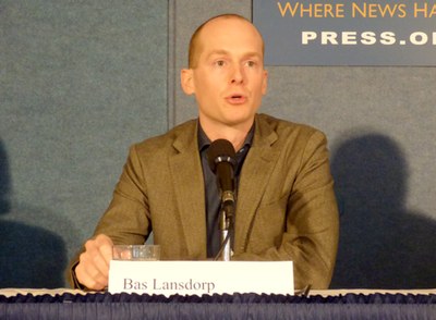 ![]() Mars One CEO Bas Lansdorp discusses his organization’s plans for a robotic lander and orbiter during a December 10 press conference in Washington, DC. (credit: J. Foust) |