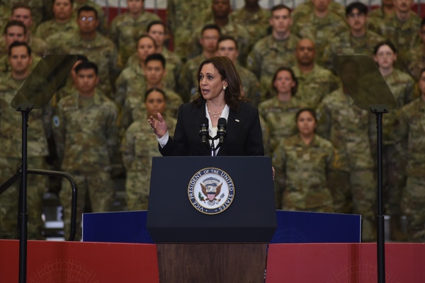 However, Harris did use the brief speech last Monday at Vandenberg to make a policy announcement. She couched the announcement in a broader discussion of international norms and rules that she said Russia had “completely violated” with its invasion of Ukraine. “In the face of Russian brutality, the world has come together to say these roles and these rules and norms must be upheld,” she said.
