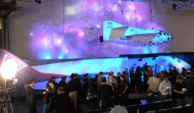 That press conference, held just before the opening of Wired magazine’s NextFest—a public expo featuring dancing robots, video games controlled by body motions alone, and designs for future spacesuits—at the Javits Center in New York, had a mix of style and substance. Yes, there was a sound-and-light show, and a new computer animation showing the flight of SpaceShipTwo (SS2), while warning that the depiction of the spacecraft in the video was conceptual only. However, Virgin Galactic also showed off a detailed design for the cabin of their planned suborbital spacecraft, and shared some new details about both its development and how it fits into a grander scheme.
