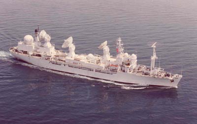 The conversion was extensive. The tracking systems required the installation of new power generators and air conditioning. The mounts for the three large tracking dishes required special bracings that ran all the way to her keel. All the extra topweight required additional ballast to keep her stable. Vandenberg was equipped with a state of the art military grade Univac computer and half of her 200-man crew was devoted to the tracking systems. After over two decades of service, most of it serving far downrange from Cape Canaveral, she was retired in the 1980s and struck from the Naval Register in 1993, laid up in the James River where she sat, slowly rusting, until the producers of Virus came along.